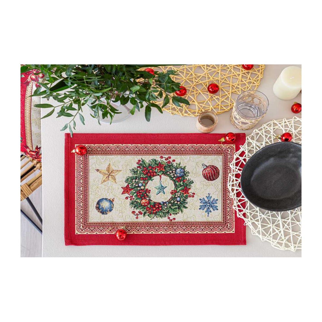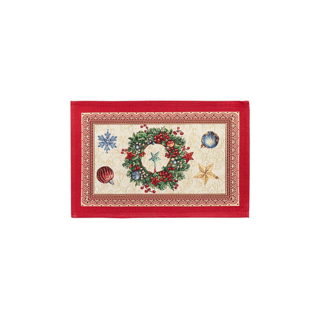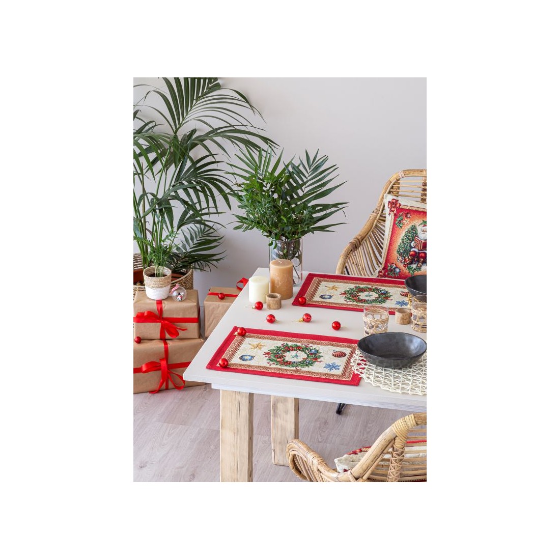 Jacquard placemat set with Santa Claus and reindeer. 30x45 VILLAGE