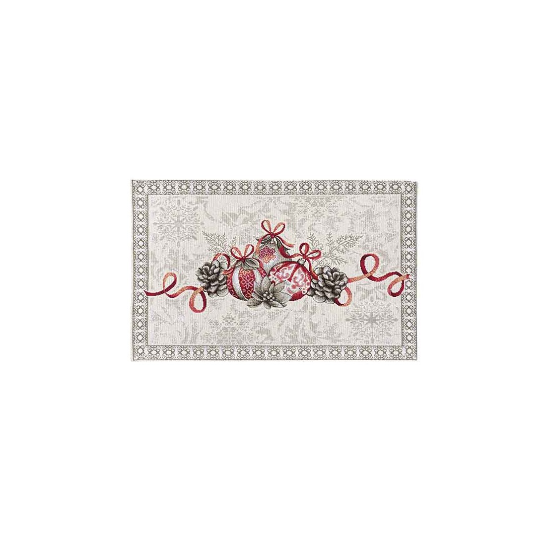 Jacquard placemat set with a collection of Christmas baubles in silver and red tones. A very elegant placemat set thanks to the shiny touch provided by the lurex. Washable. KRIS