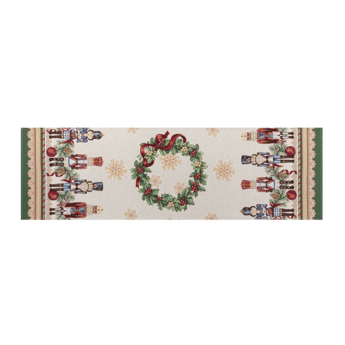Camino de mesa de tejido jacquard con Papa Noel y ciudad navideña 40x135. VILLAGE