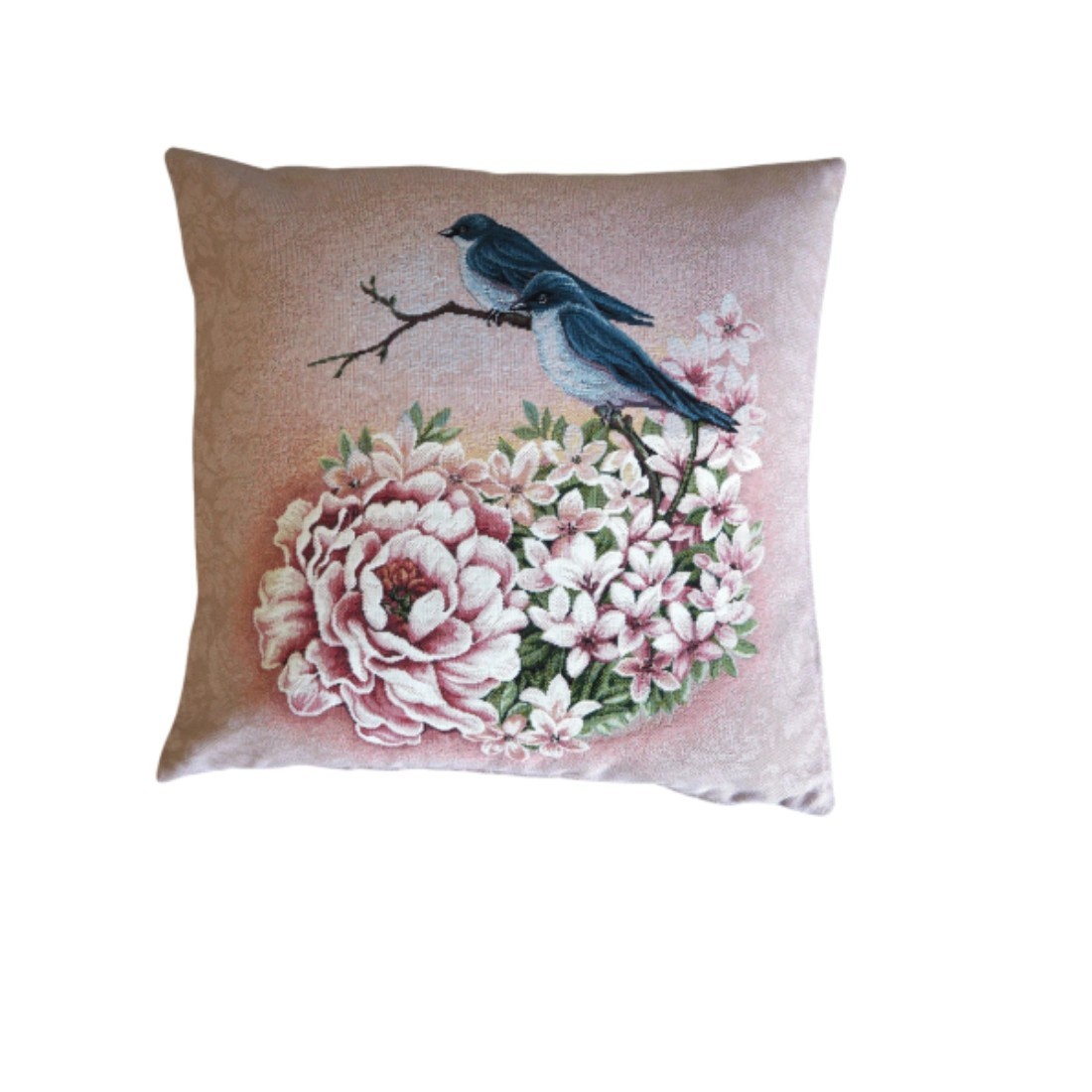 Cojín decorativo 45*45cm con diseño de aves silvestres y peonías
