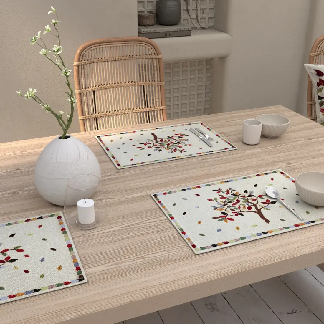 Please note that the product and price shown correspond only to the placemat set. Other decorative elements shown in the images are not included. Ideal for everyday use or special occasions, it protects your table surface while adding an elegant and cozy decorative touch.