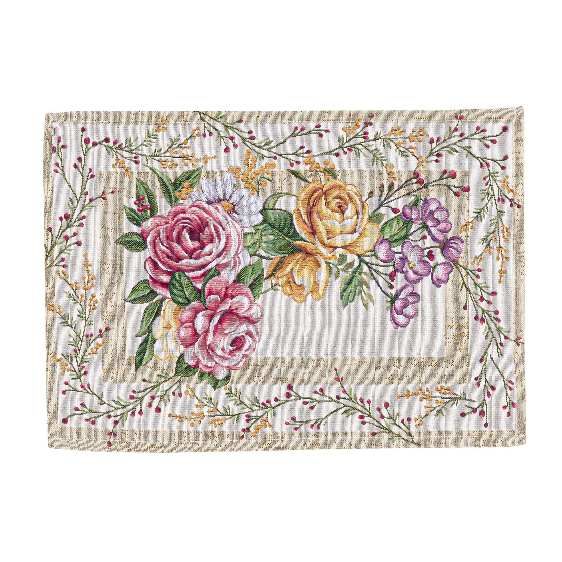 Jacquard placemat set with flowers and beige background 30x45 Xana