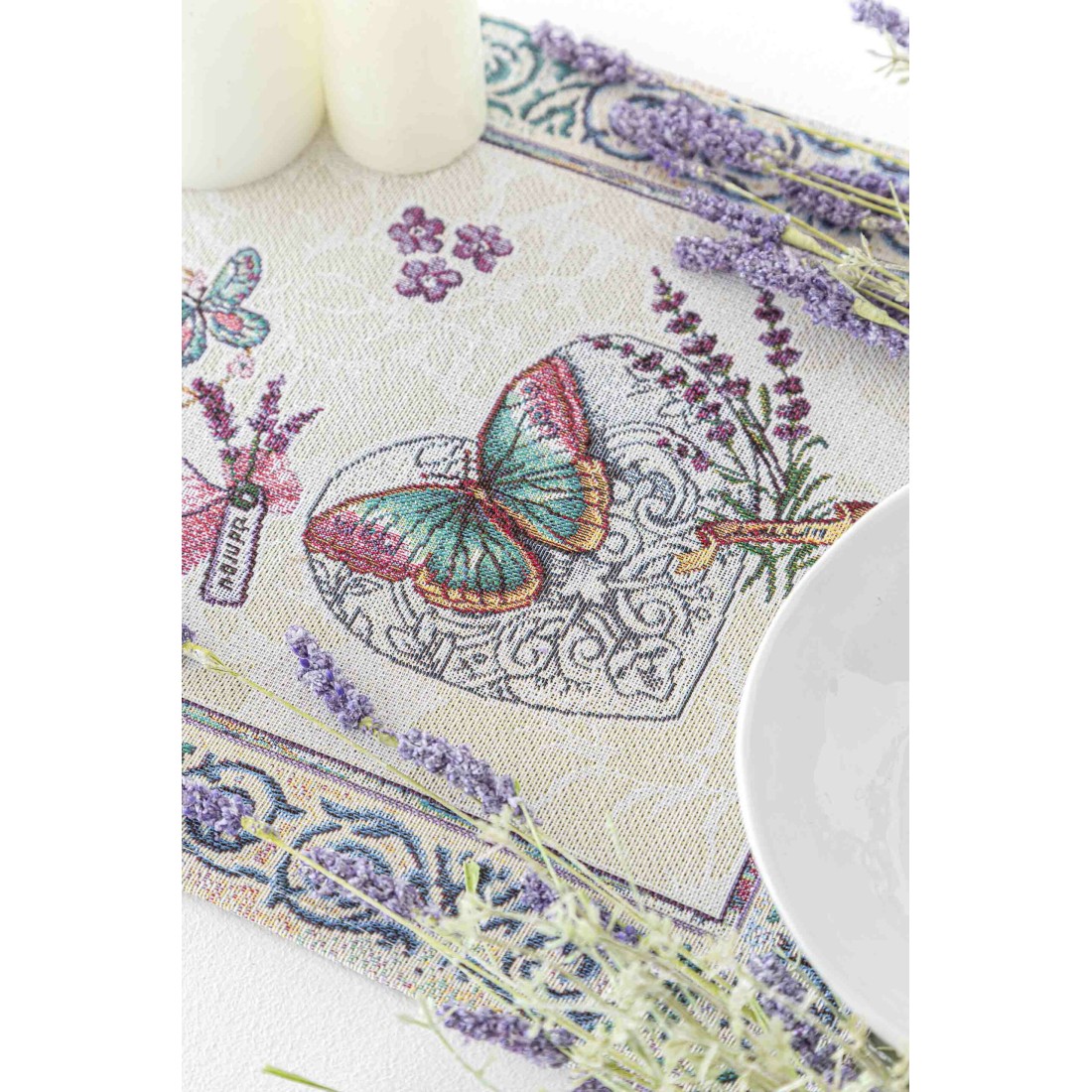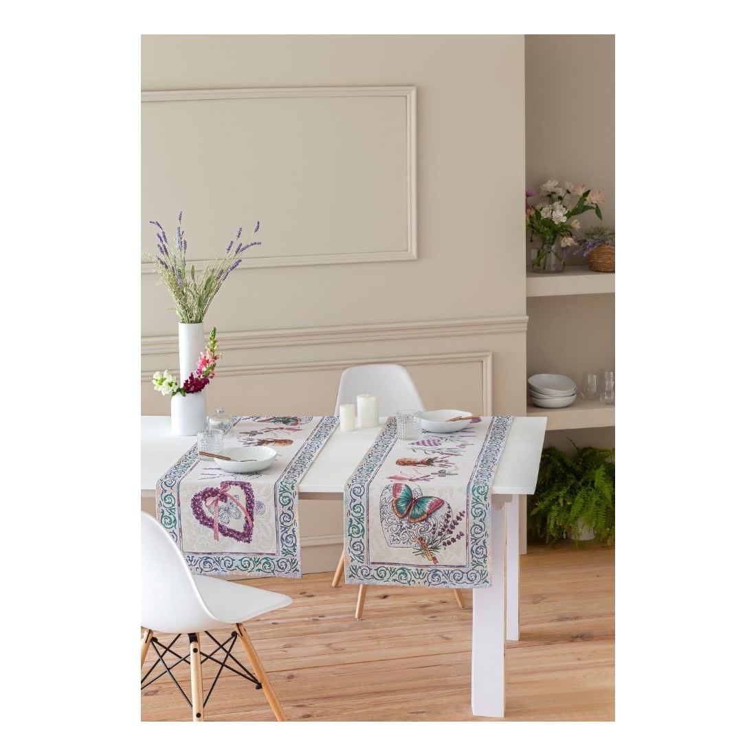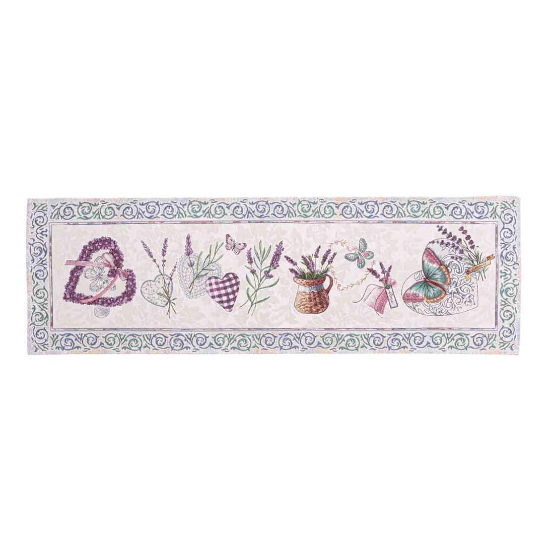 Jacquard table runner with lavender flowers. Washable. LAVANDER.