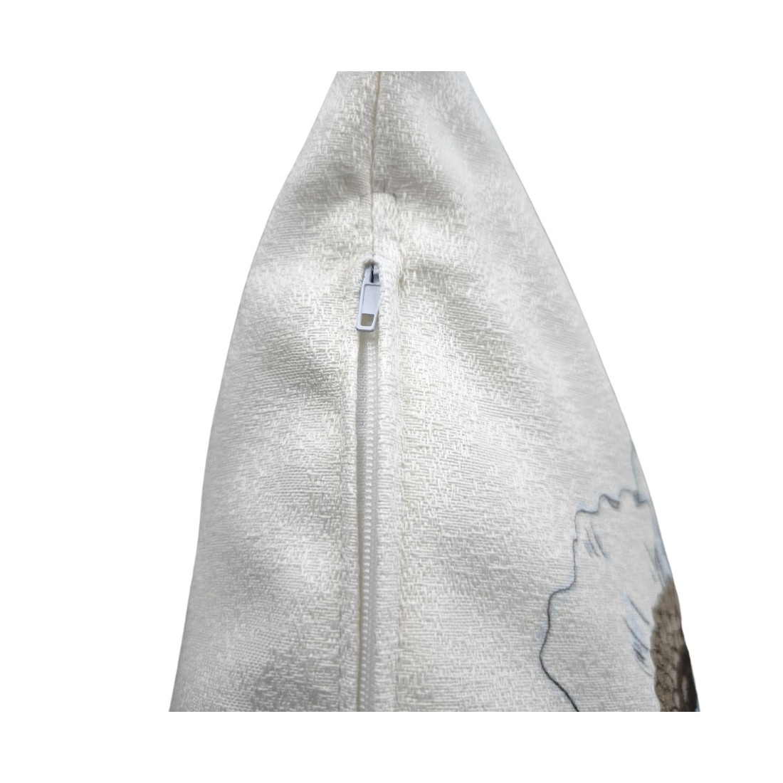 Cushion cover with blue flowers and leaves drawn in feather style. Zipper closure. Washable. LILY C.3