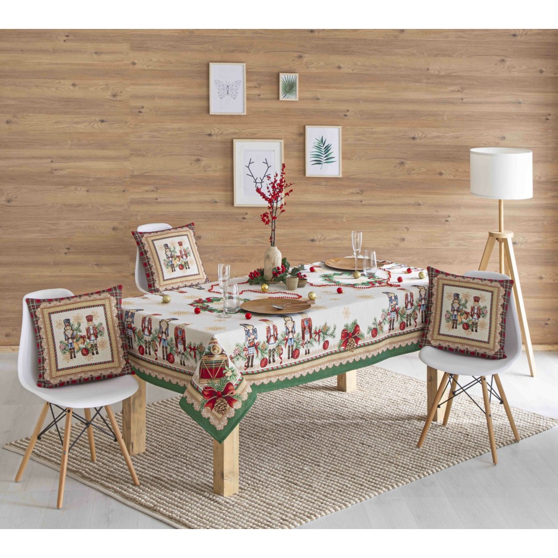 This Christmas-themed tablecloth brings the characteristic atmosphere of winter holidays to the table. Nutcracker soldiers, a traditional symbol of Christmas décor, add a decorative touch full of history and personality.
