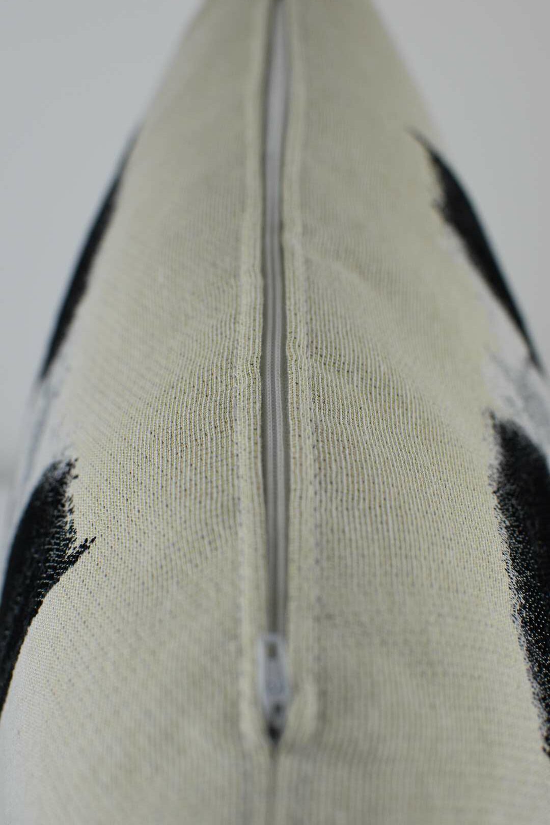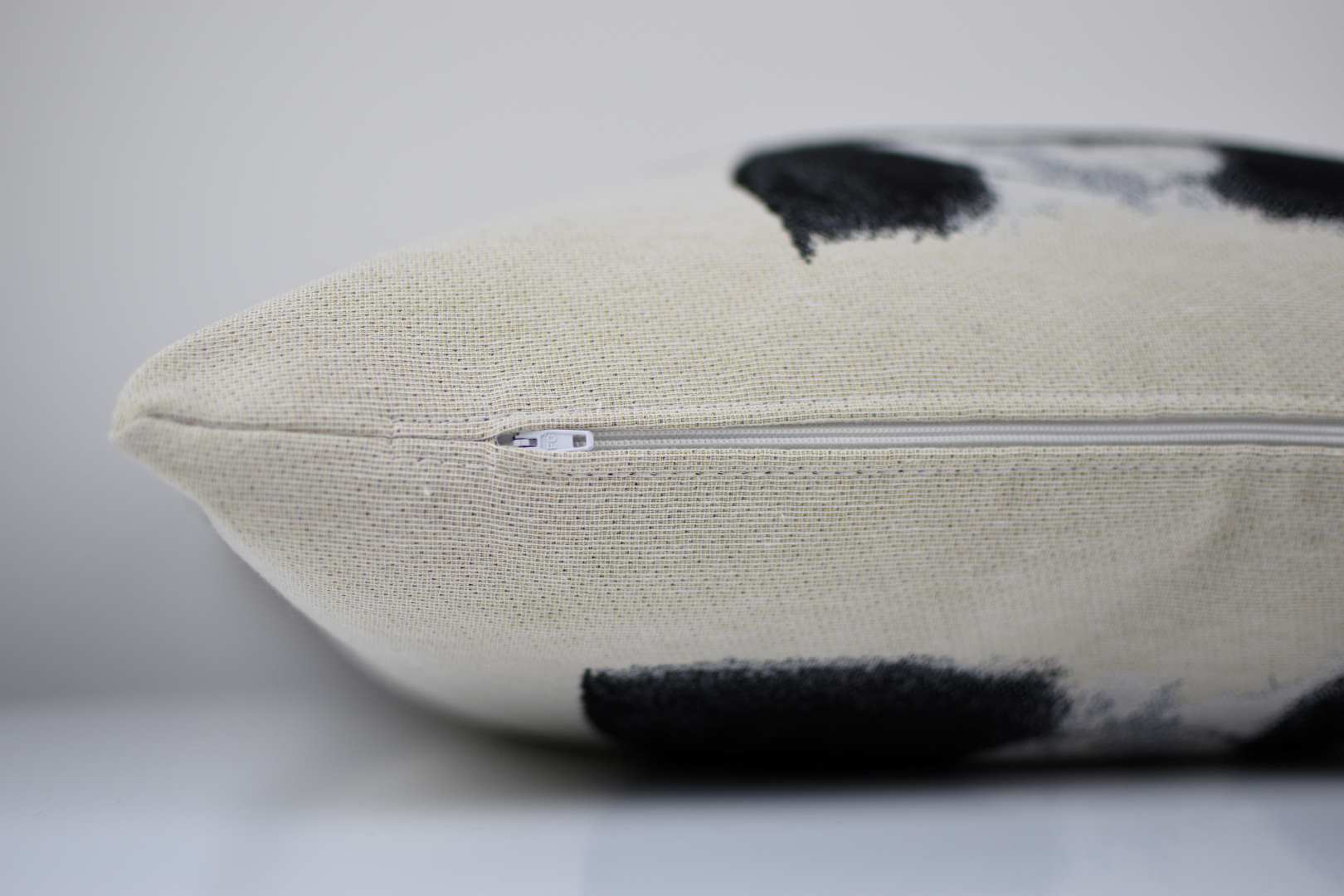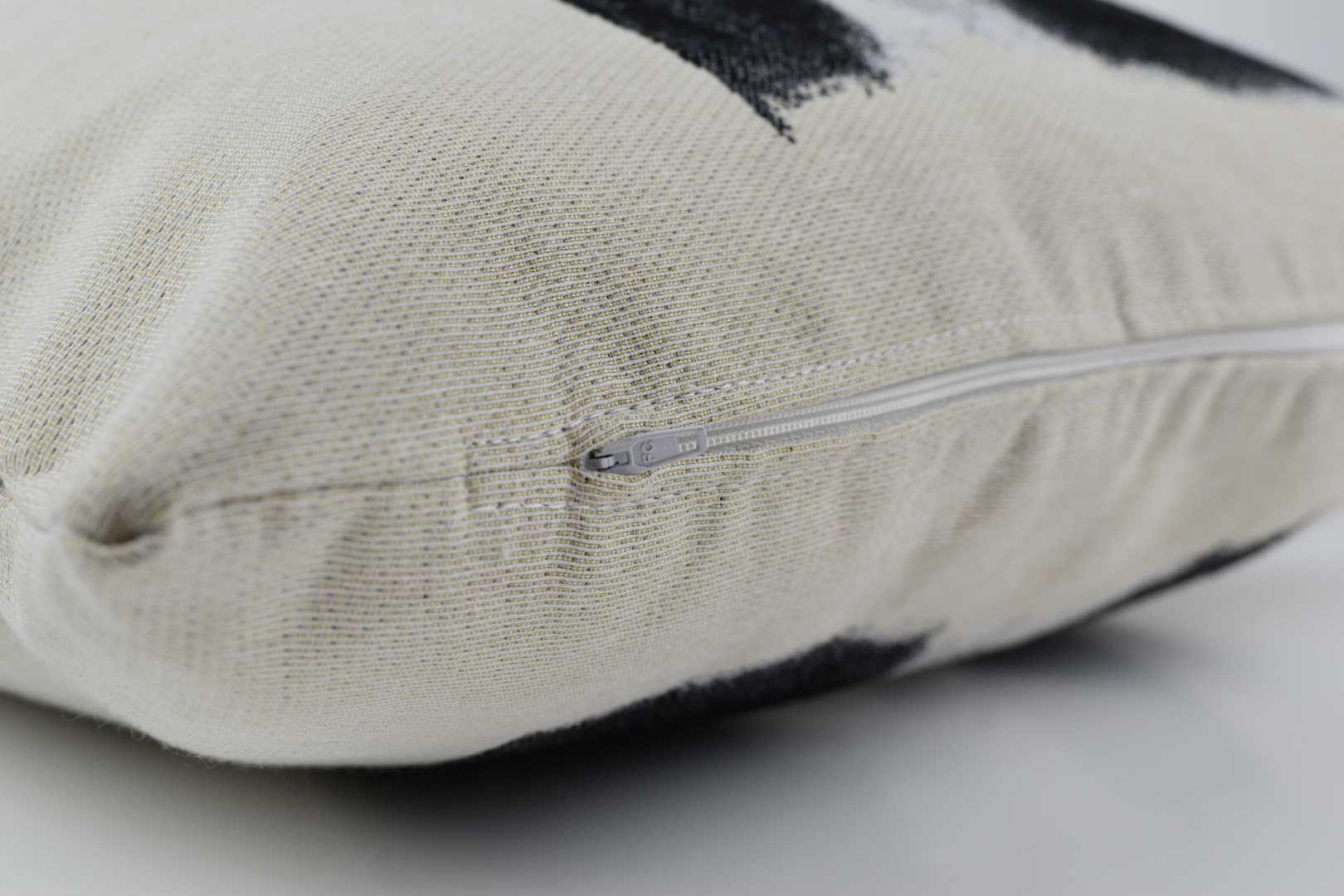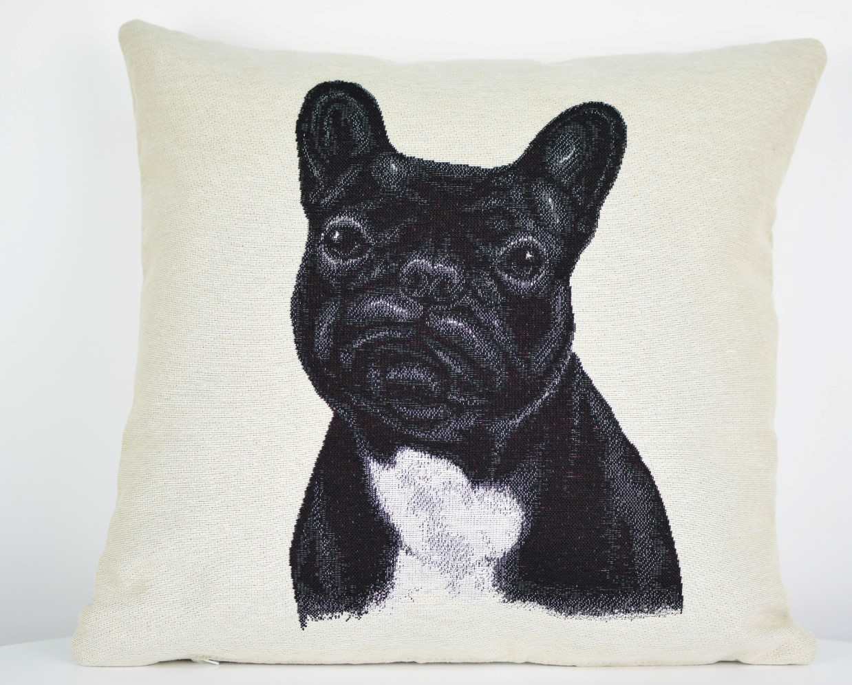 Jacquard cushion cover French bulldog dog color black and white background. Zip closure.
