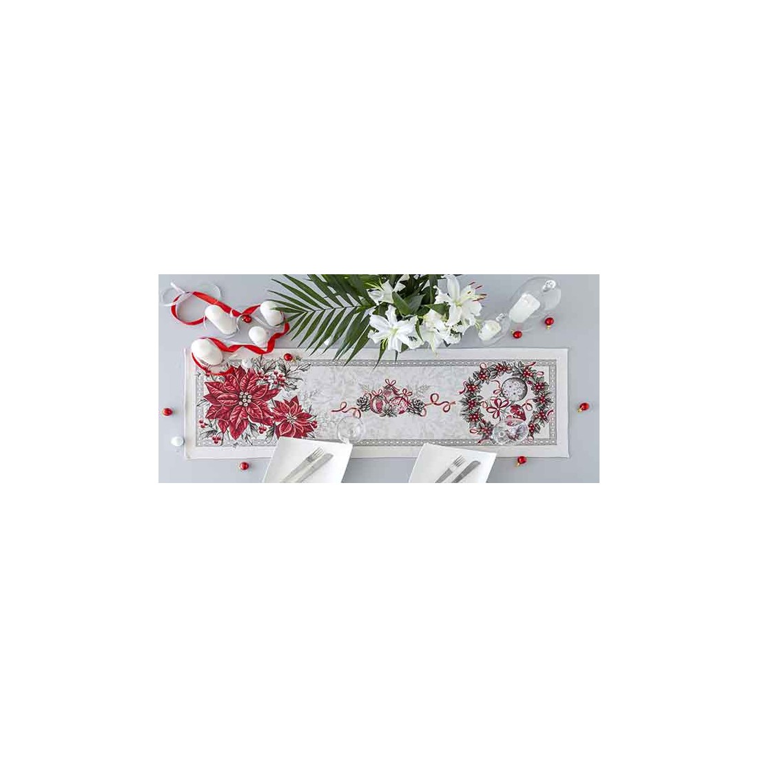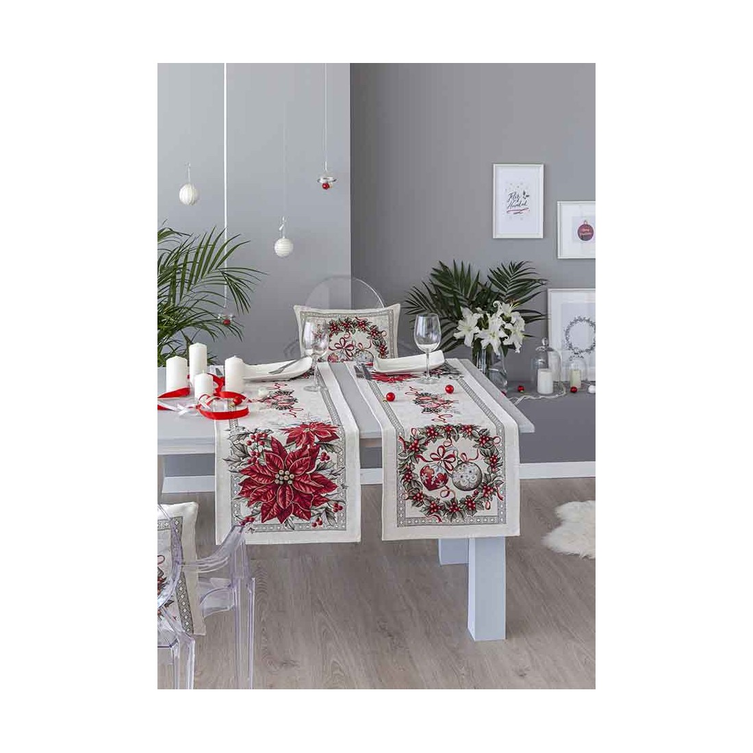 Camino de mesa de tejido jacquard con corona y motivos navideños. 40x135 FIDELITY