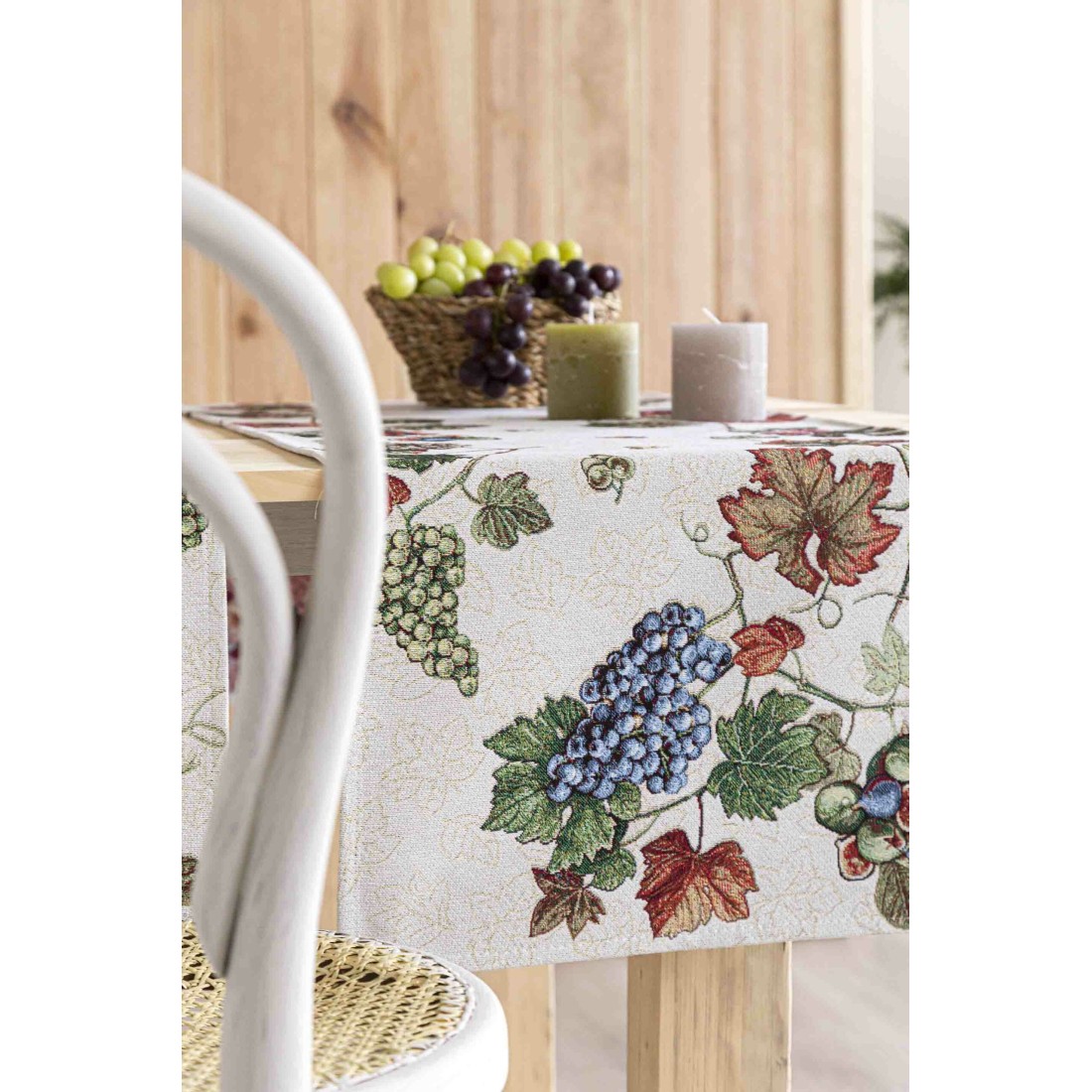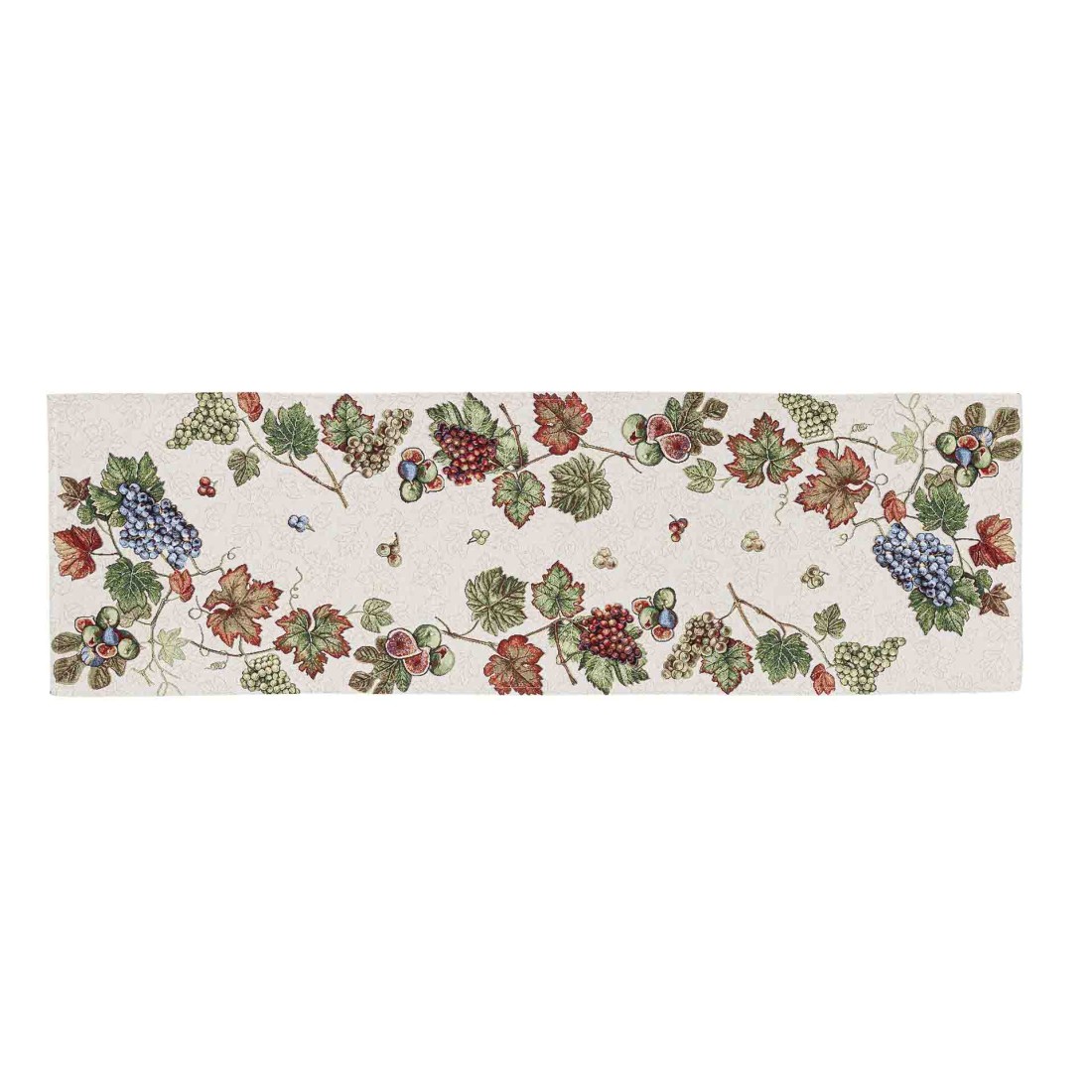 Camino de mesa de tejido jacquard con hojas de parra, racimos de uva e higos. Lavable. PARRA.