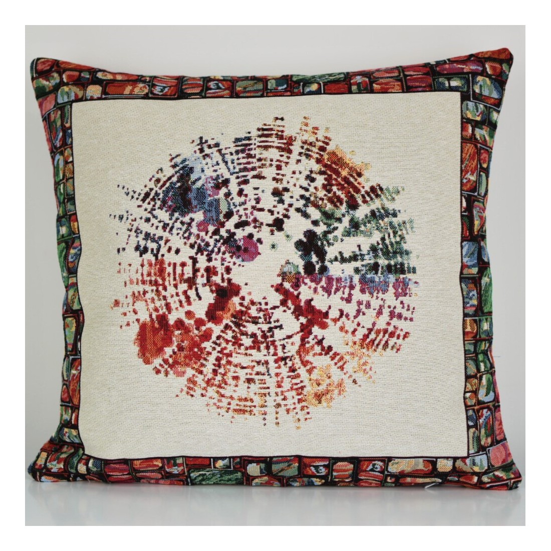 Funda cojin Jacquard con circulo central abstracto TULUM. Cierre con cremallera