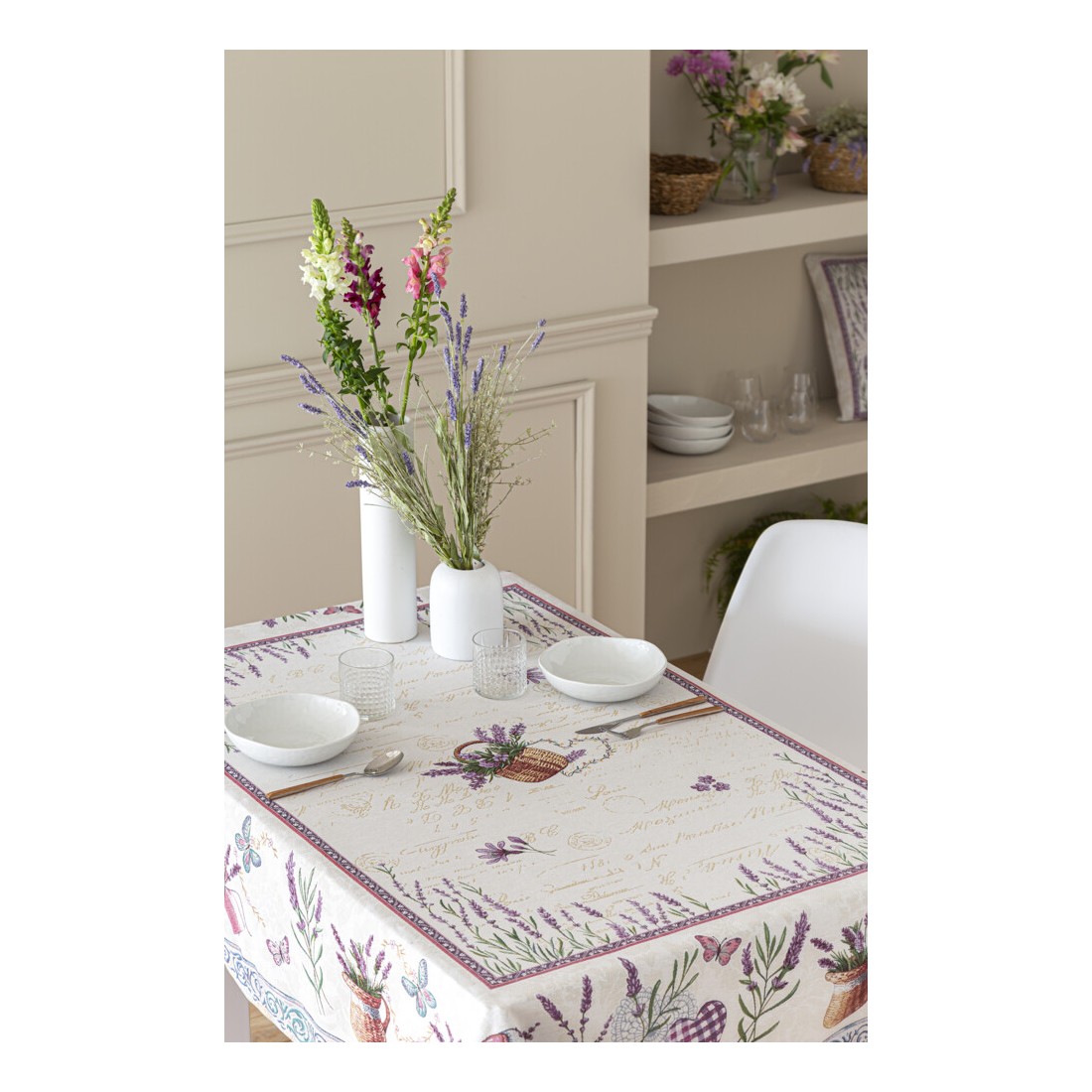 Mantel de tejido Jacquard con flores de lavanda LAVANDER. Composición: 60% Poliester, 40% Algodón.