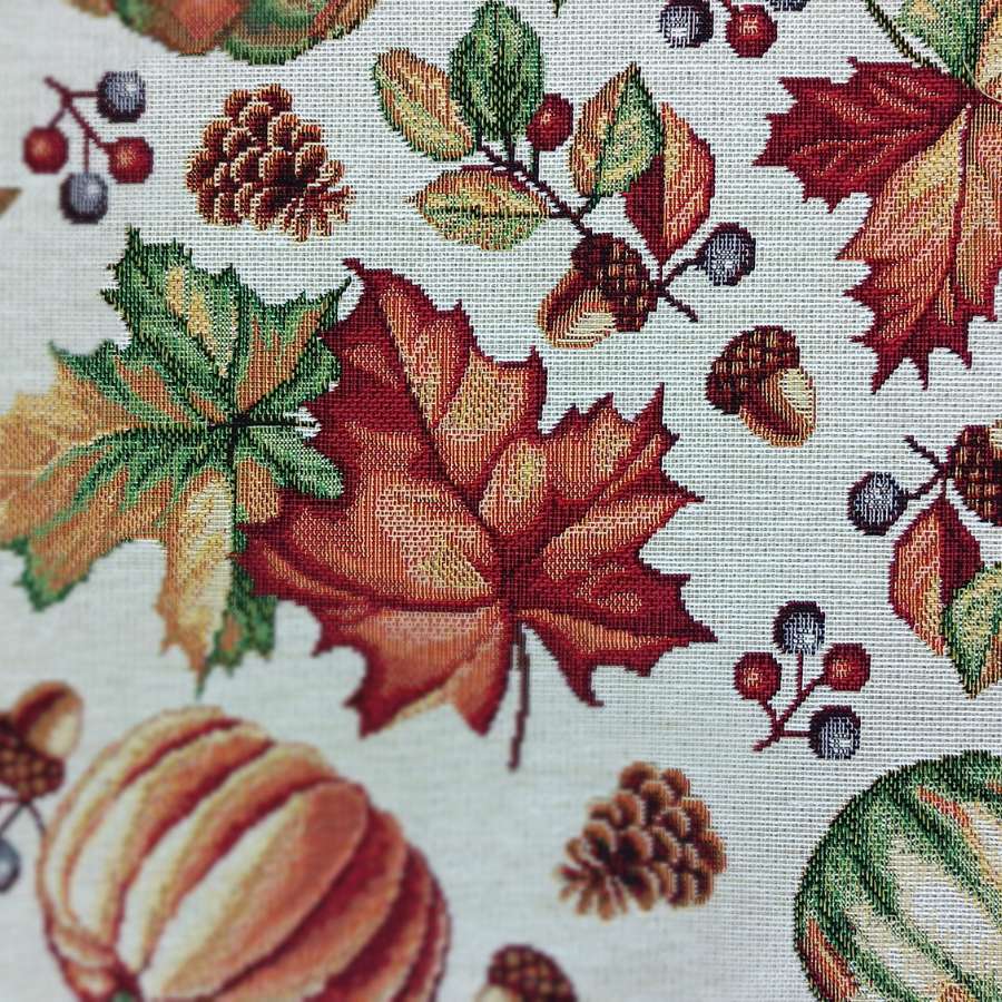Tejido Jacquard AUTUM con hojas y calabazas otoñales. Ancho 140
