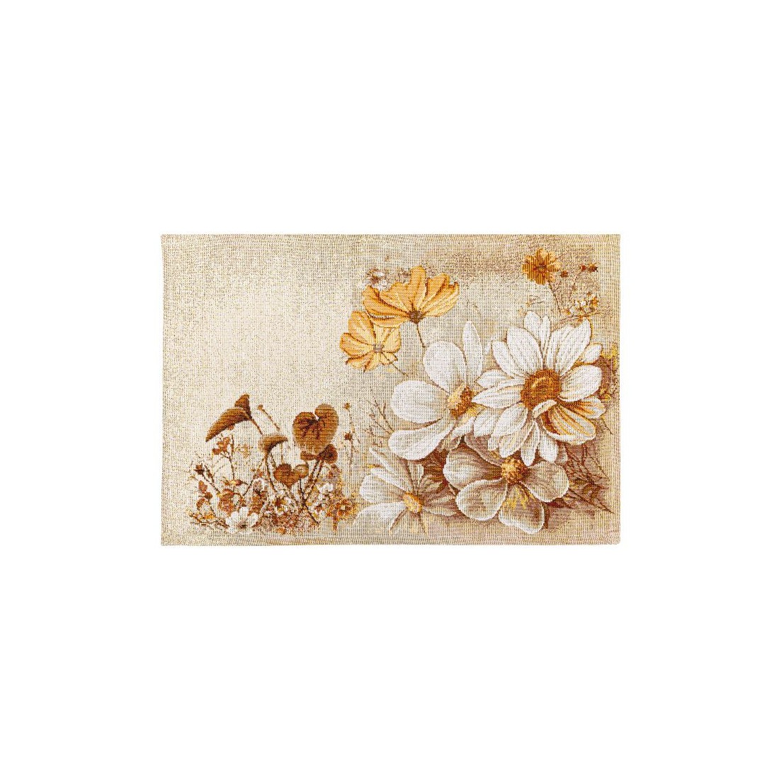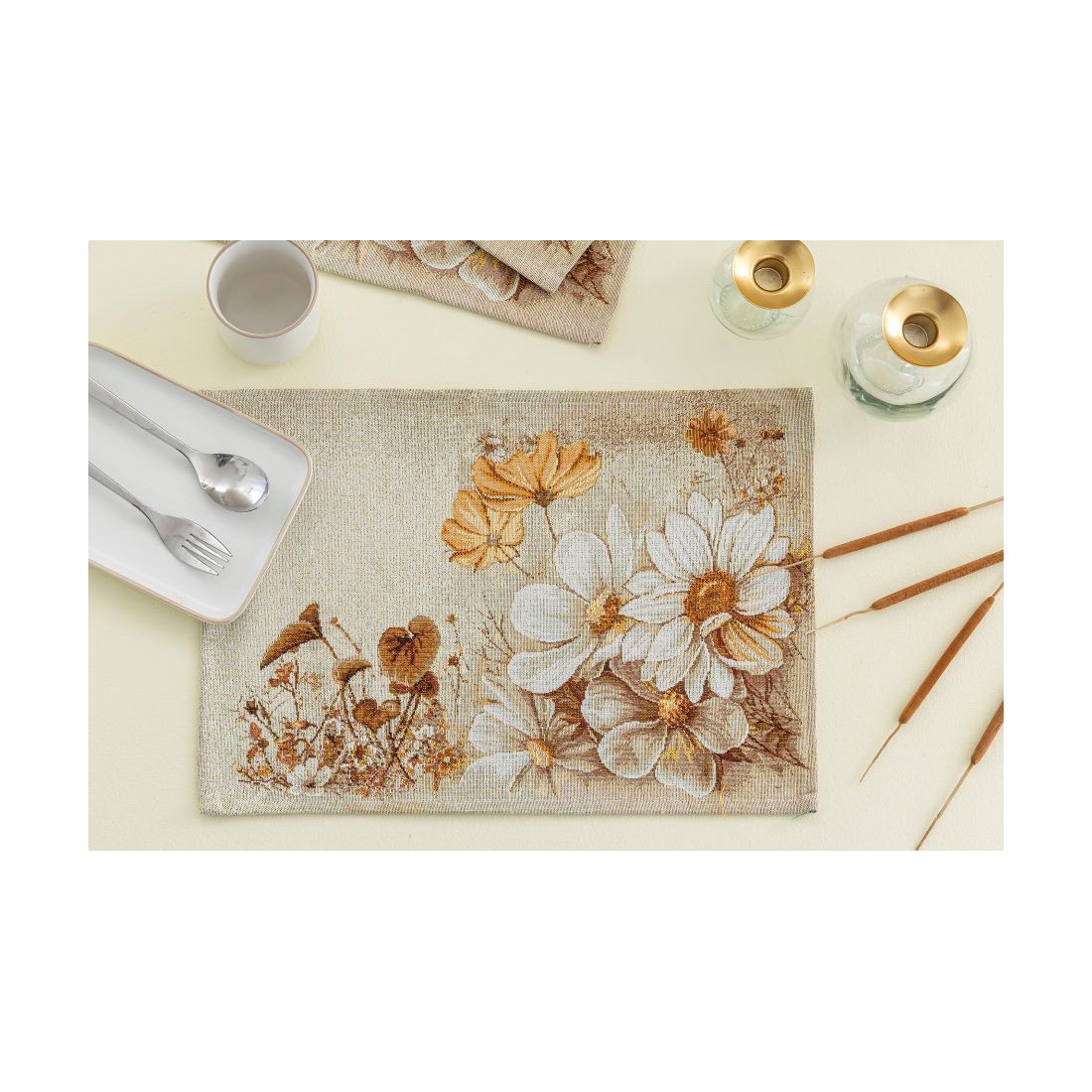 Set individual de mesa de tejido Jacquard con flor dorada fondo beig. 30X45 NITRA.