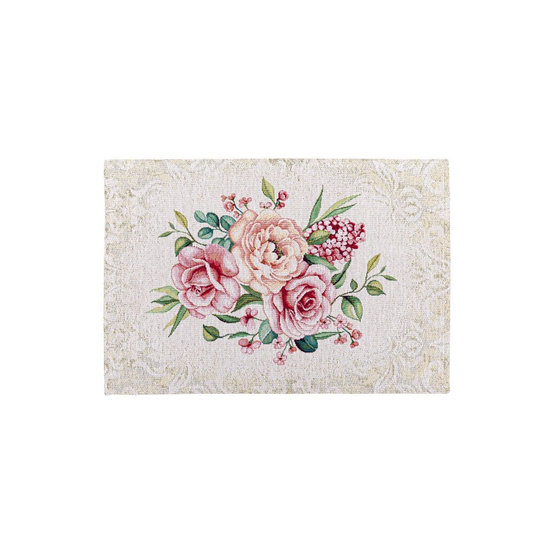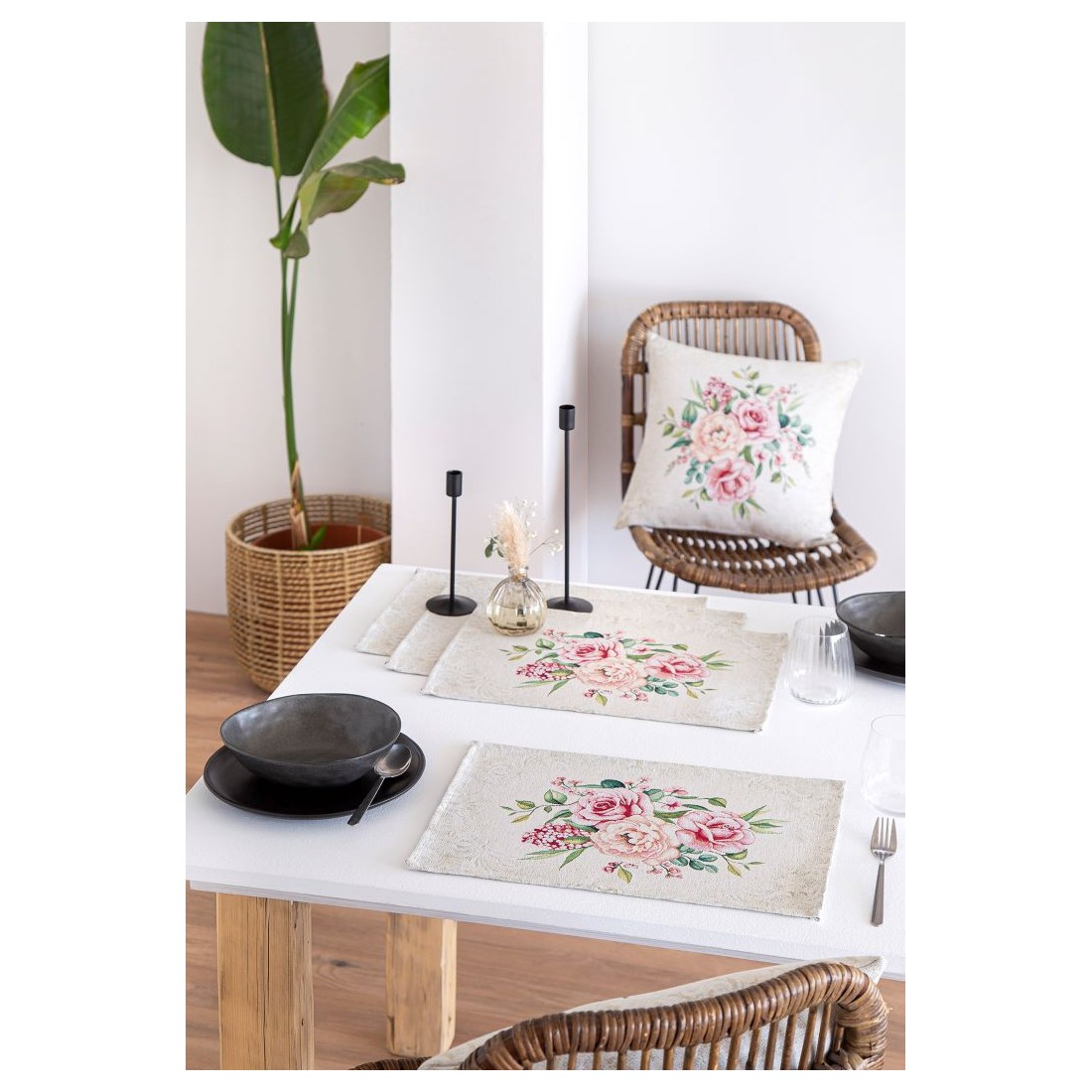 Set individual de mesa de tejido Jacquard con flor rosa fondo beig. 30X45 PADUA