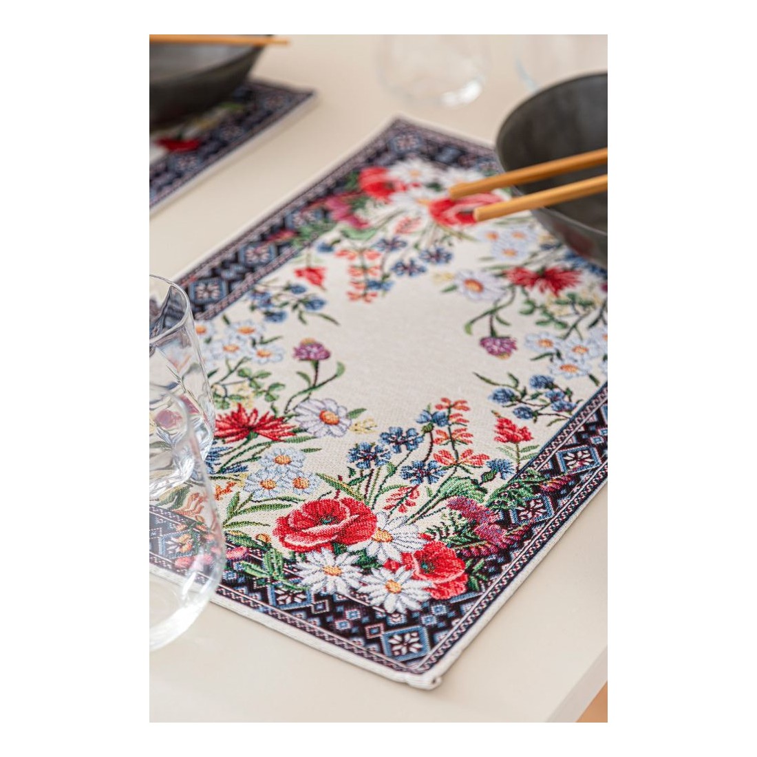 Set individual de mesa de tejido jacquard con flores silvestres. 30x45 Chamomille