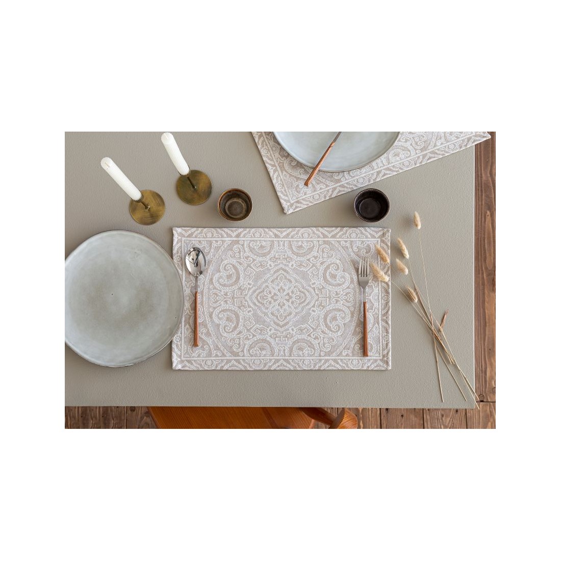 Set individual de mesa de tejido Jacquard con motivos geométricos grises 30x45. MYKONOS C6