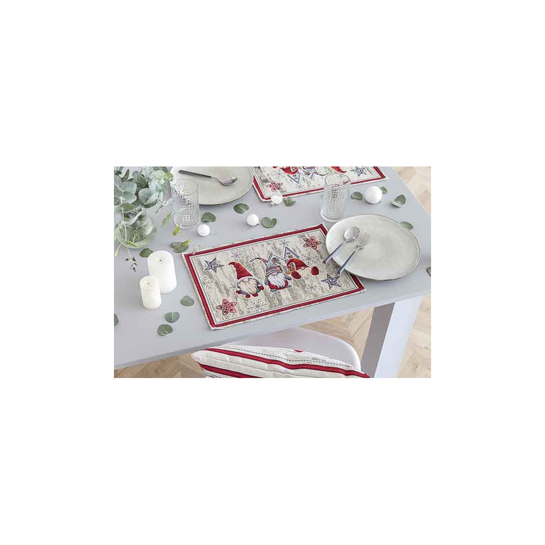Set individual de mesa de tejido jacquard con Gnomos Navideños. 30x45 GNOMOS