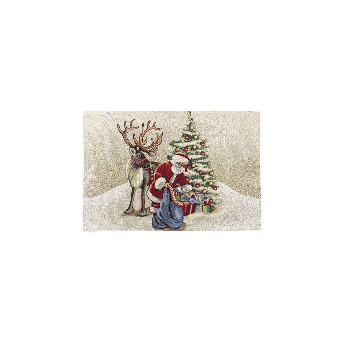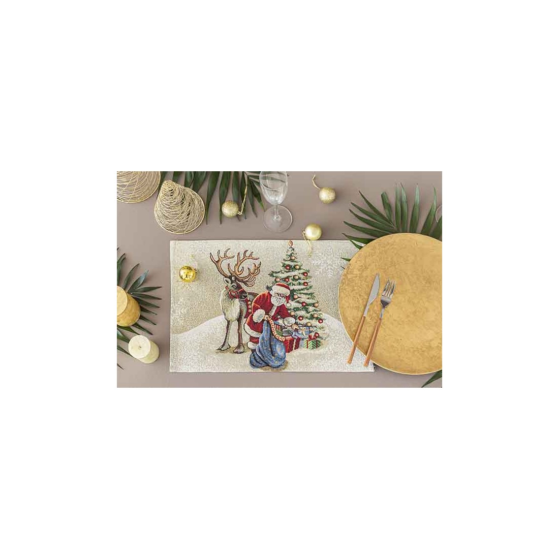 Set individual de mesa de tejido jacquard con Papa Noel y reno. 30X45 VILLAGE