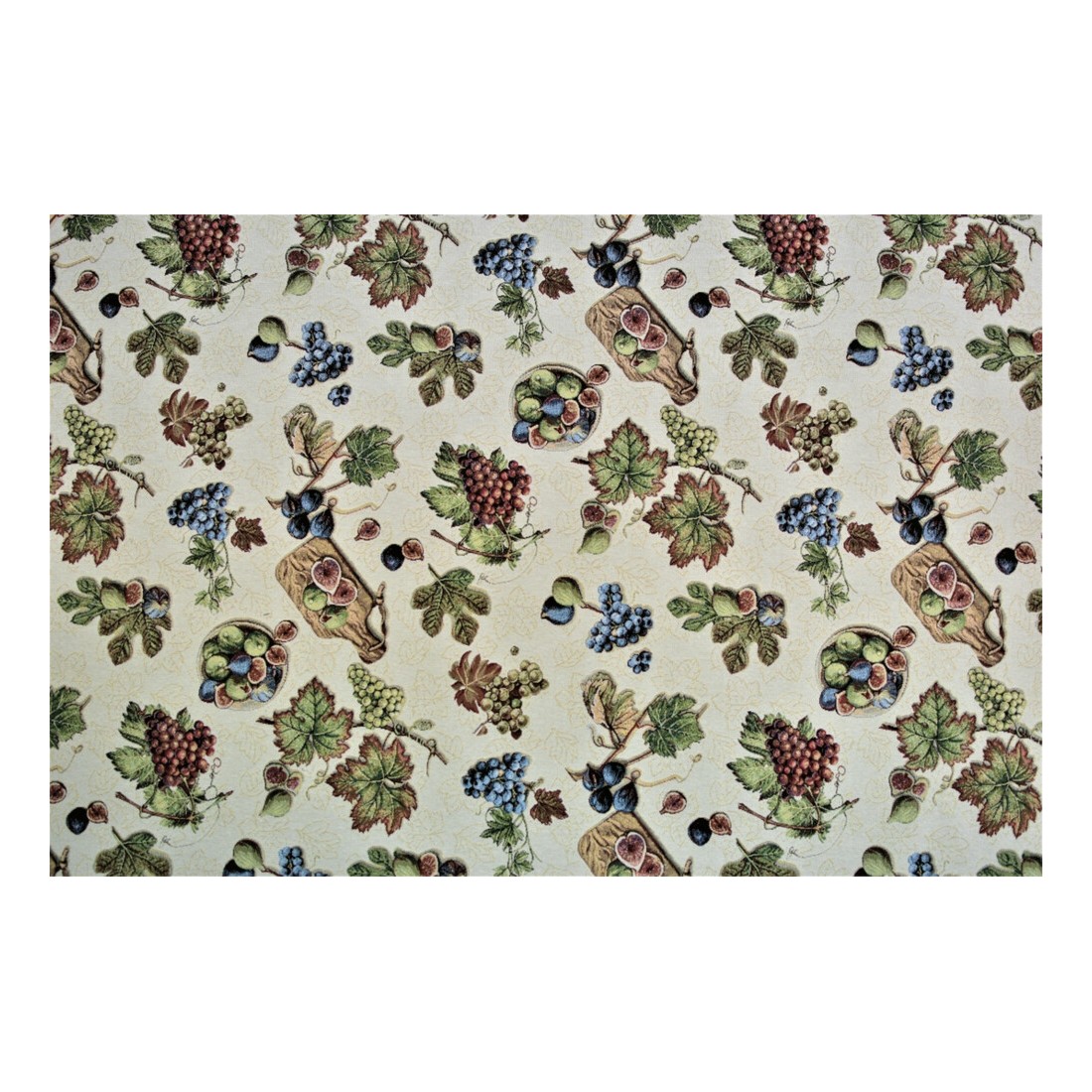Tejido Jacquard con hojas de parra, racimos de uva e higos. Composición: 60% Poliéster, 40% Algodón. Unidad de compra: metros de tela de 140cms de ancho. Peso: 397 g/m2.